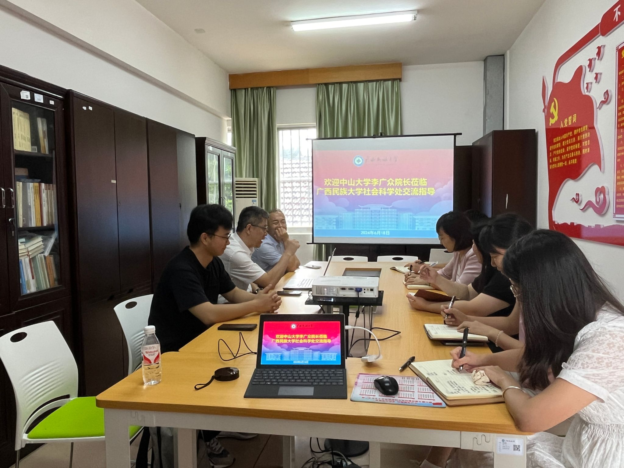 6月18日上午,中山大学商学院(创业学院)院长李广众教授等一行三人莅临版权所有:M88在线客服|专业客服团队,7×24小时贴心服务,就怎样推进有组织科研、如何激发教师科研积极性及进一步完善管理制度,健全管理机制等方面进行了深入的交流指导。社科处副处长胡佳教授主持,社科处全体工作人员参加。