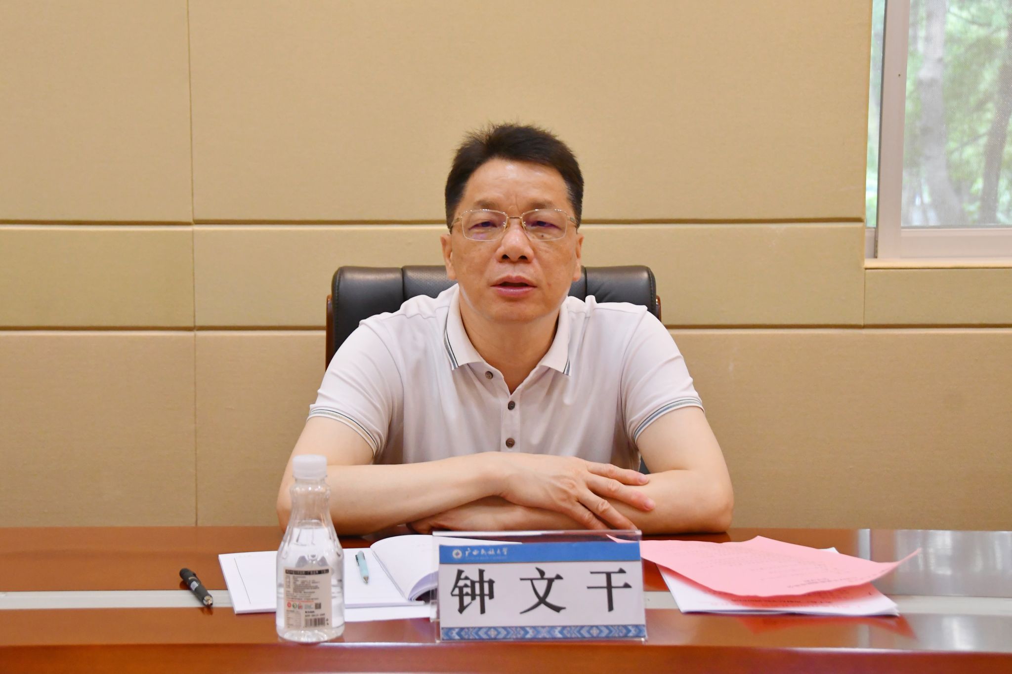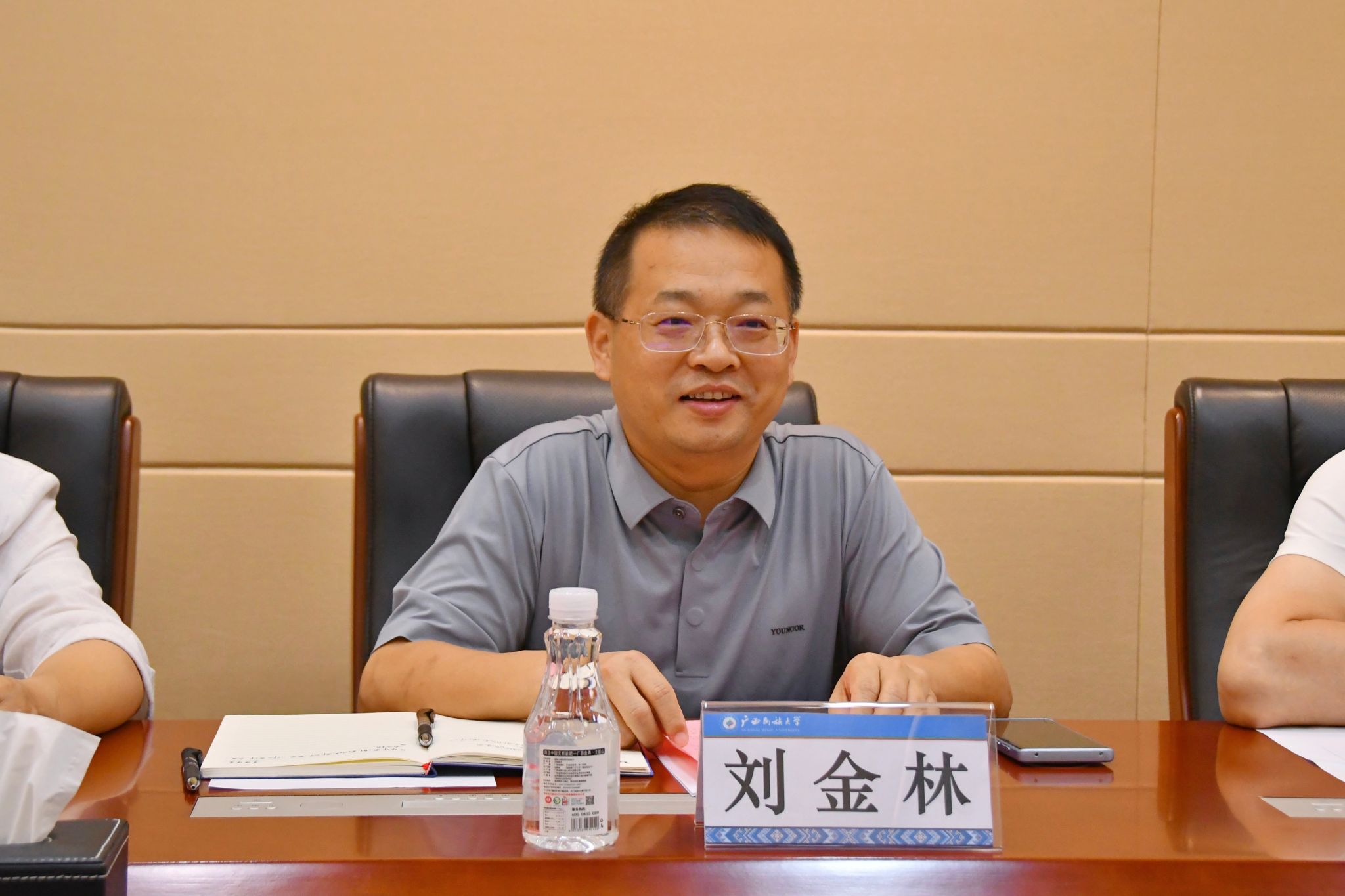 刘金林对钟文干一行的到来表示欢迎,并系统介绍学校在社会科学领域的发展概况,重点介绍了近年来在学科建设、科研创新、人才培养等方面取得的成绩。他表示,学校将一如既往地支持社科联工作,期待自治区社科联继续发挥桥梁纽带作用,助力学校在服务地方经济社会发展中作出更大贡献。