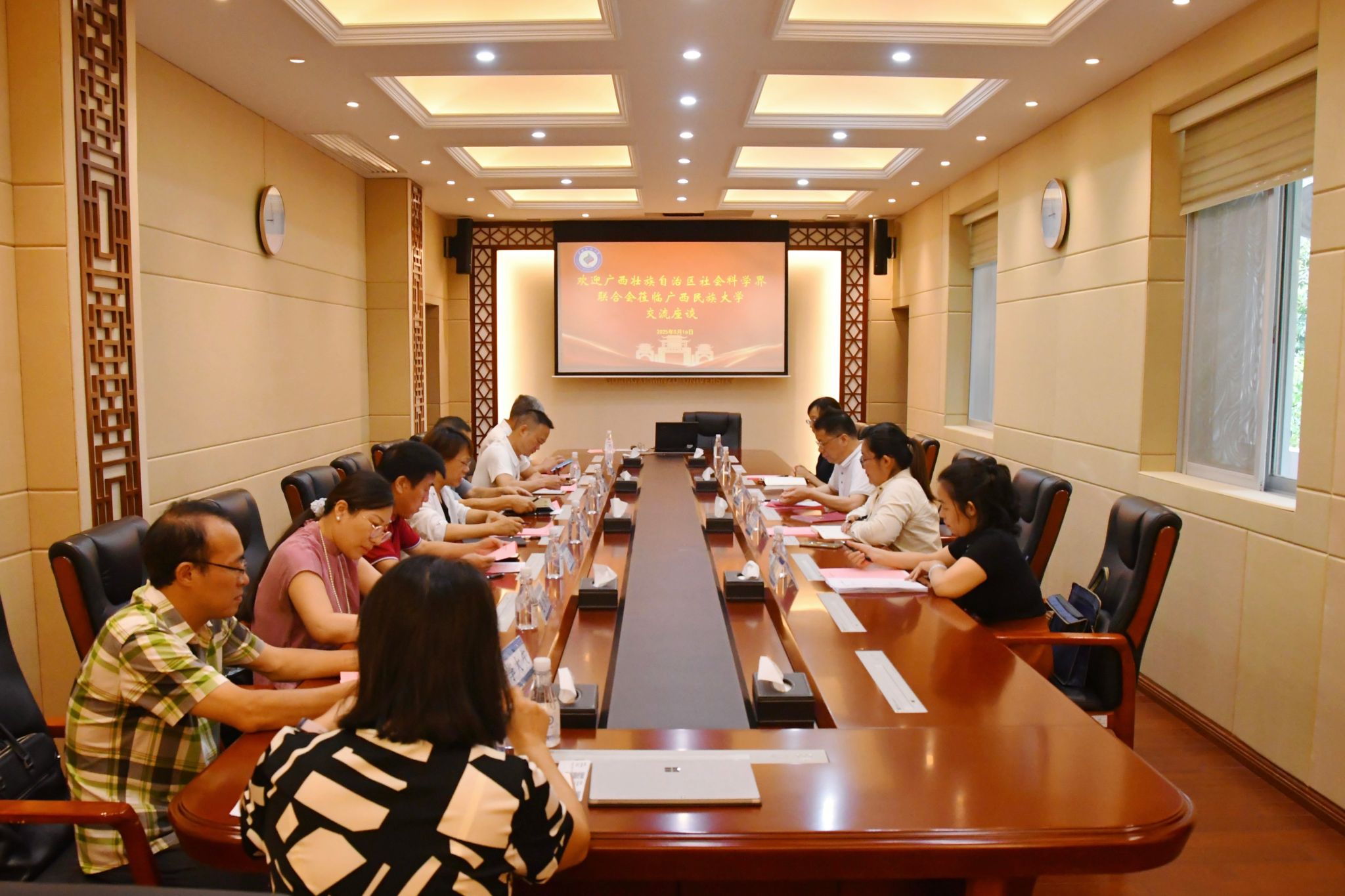 5月16日上午,广西壮族自治区社会科学界联合会党组成员、副主席钟文干率队到m88在线客服调研,学校党委书记卞成林,党委常委、副校长何立荣会见了调研组一行。随后,双方在学校办公楼211会议室举行座谈会,m88在线客服党委常委、统战部部长、党委办公室、校长办公室主任、学校社科联秘书长刘金林出席座谈会,学校社会科学处及相关学会负责人参加会议。